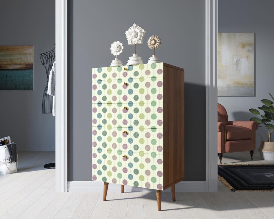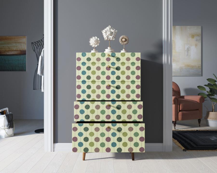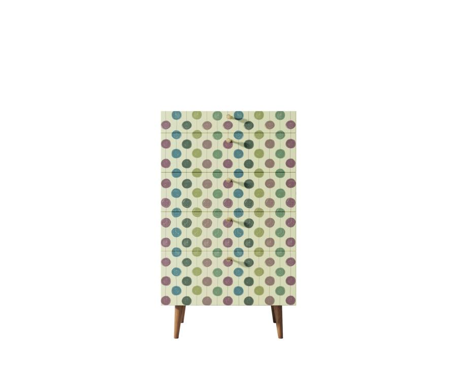 Комод высокий "Berber" принт 24. Высокий комод "Berber" имеет 5 выдвижных ящика на металлических направляющих. Комод достаточно высокий и узкий, что позволяет его применять практически везде, так как он не займет много места - спальня, гостиная, прихожая или в детской. А ящики позволят навести порядок и спрятать все мелочи за стильный принт.