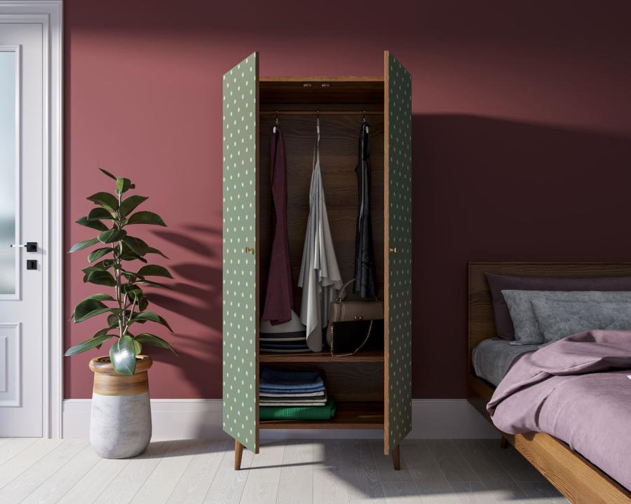 Шкаф малый двухстворчатый "Berber" принт 12. Шкаф "Berber" имеет малые формы и отлично подойдет для детской комнаты или для компактной прихожей. Ножки выполнены из массива ясеня и закреплены на металлическую пластину. Двери на доводчиках скрывают пространство для вешалок и нижнюю полку для вещей.