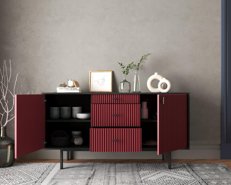 Комод две дверки и три ящика Emerson арт EM08/red/L