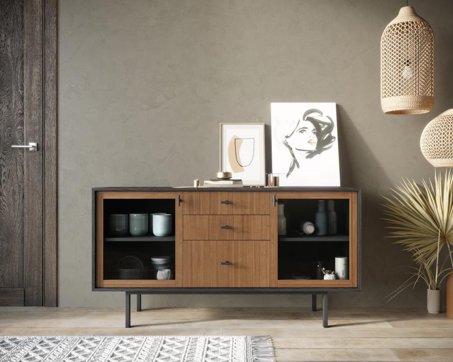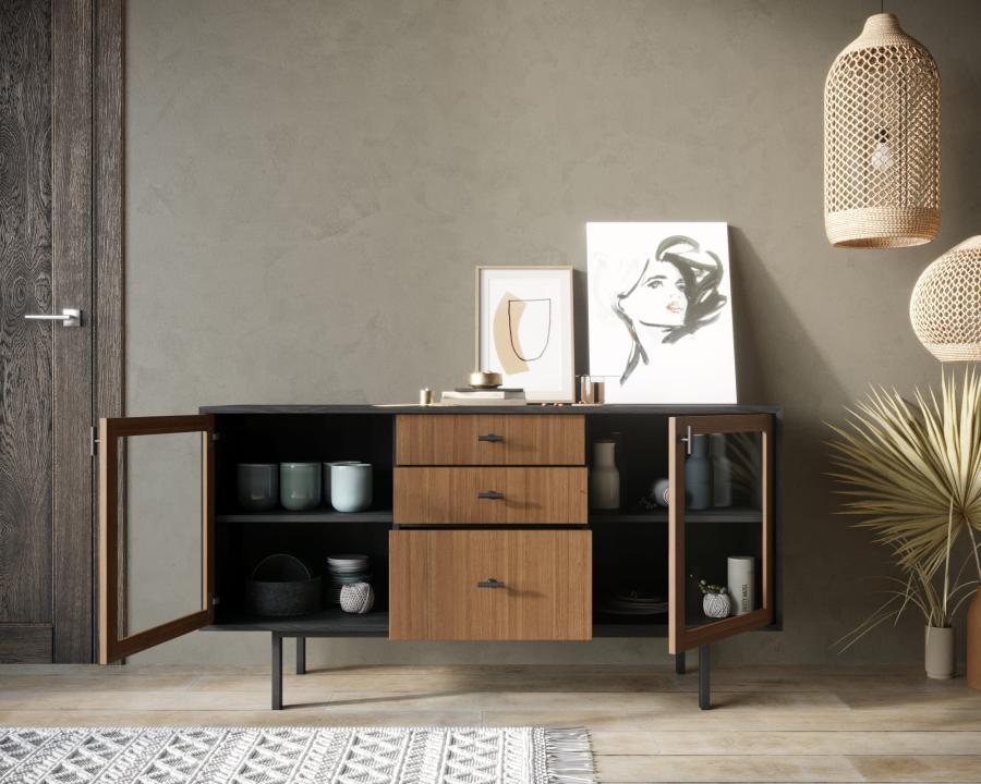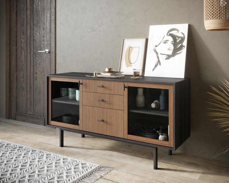 Комод две стеклянные дверки и три ящика Emerson арт EM14