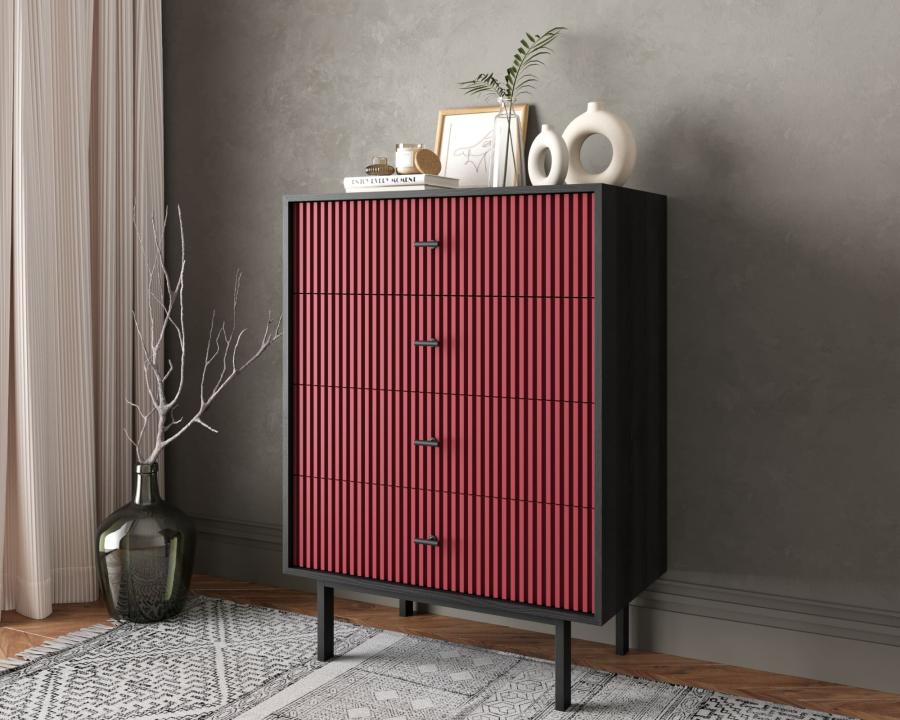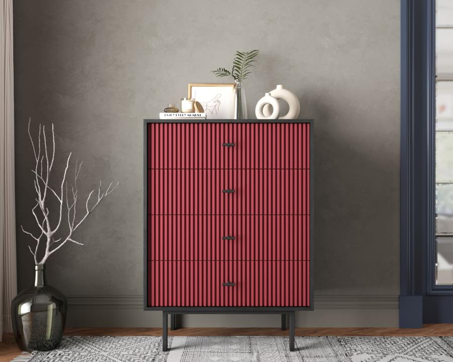 Комод вертикальный с четырьмя ящиками Emerson арт EM18/red/L