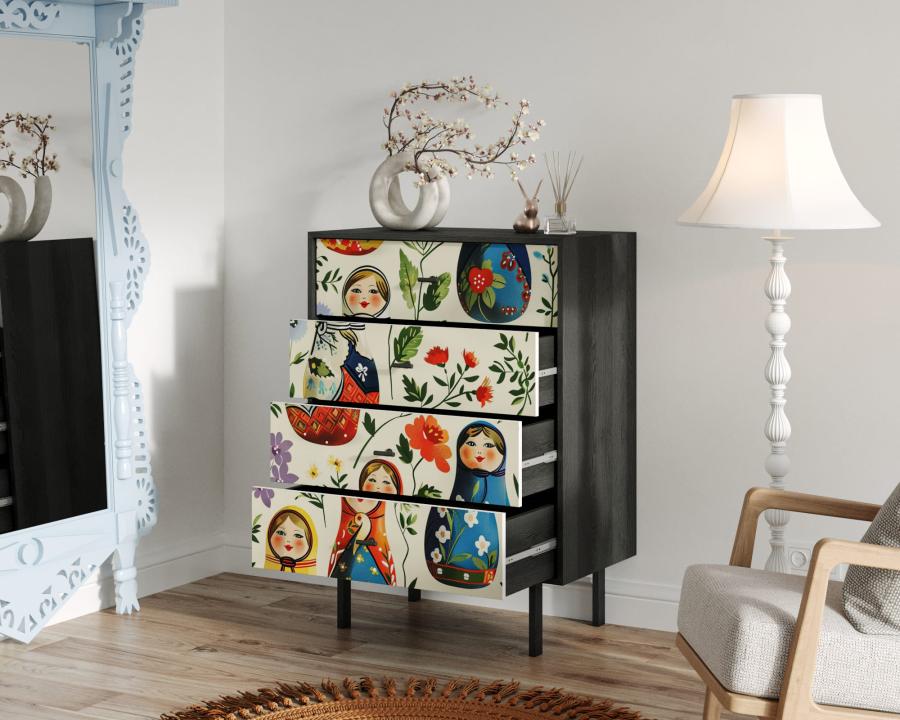 Комод вертикальный с четырьмя ящиками Emerson Матрешки арт EM18/Art04