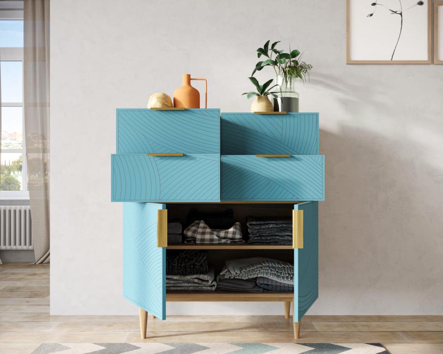 Большой комод с четырьмя ящиками и дверками Line LN17/GR1/blue