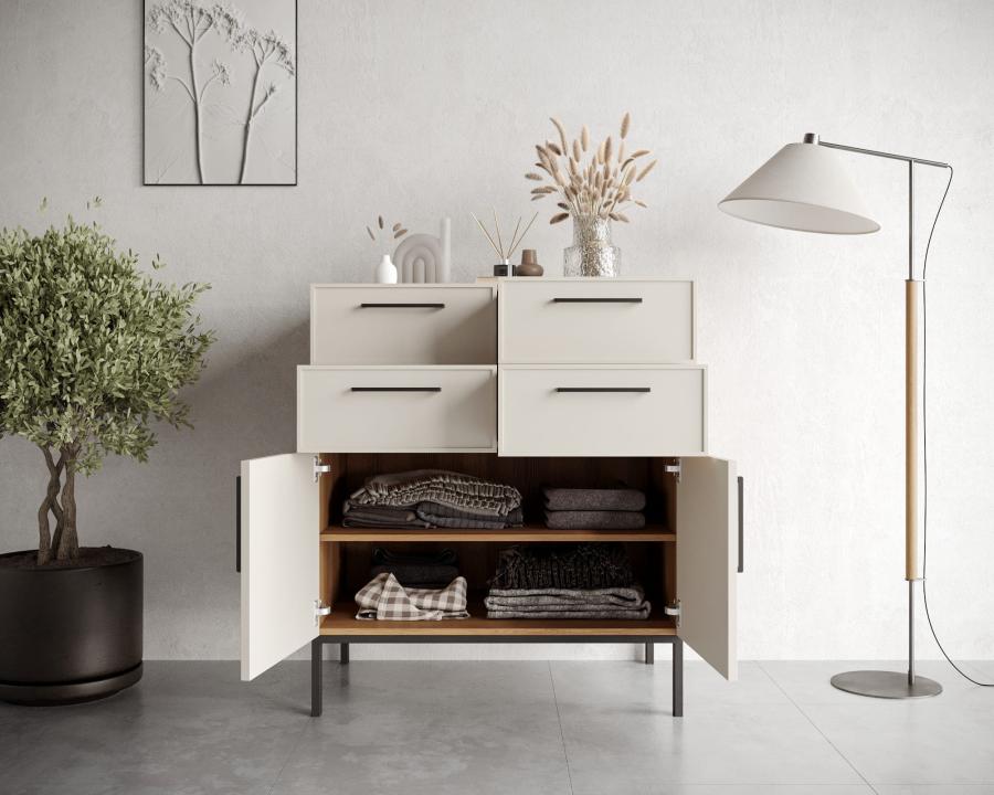 Большой комод с четырьмя ящиками и дверками Nicole NLN17