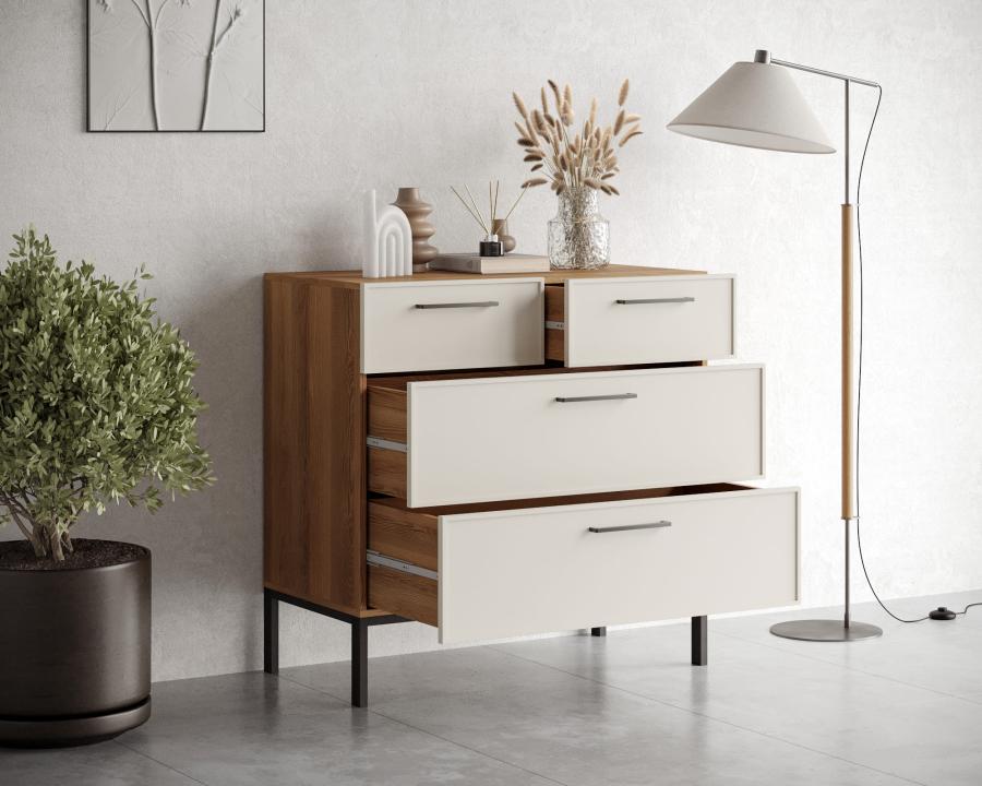 Данный комод коллекции Nicole в скандинавском стиле сочетает в себе функциональность и простую элегантность. Четкие линии и минималистичный дизайн создают атмосферу спокойствия и гармонии. Вместительные выдвижные ящики обеспечивают достаточно места для хранения ваших вещей, сохраняя при этом уютный и просторный вид вашего интерьера.