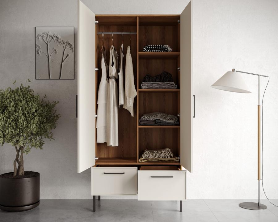 Данный шкаф коллекции Nicole в скандинавском стиле сочетает в себе функциональность и простую элегантность. Четкие линии и минималистичный дизайн создают атмосферу спокойствия и гармонии. Вместительность шкафа позволяет использовать его как под хранение одежды, так и для других вещей, сохраняя при этом уютный и просторный вид вашего интерьера.