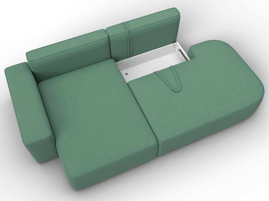 Механизм раскладки: еврокнижка. Сиденье дивана легко выдвигается вперед по направляющим. Спинка, закрепленная на кронштейнах, вручную укладывается в открывшуюся нишу.