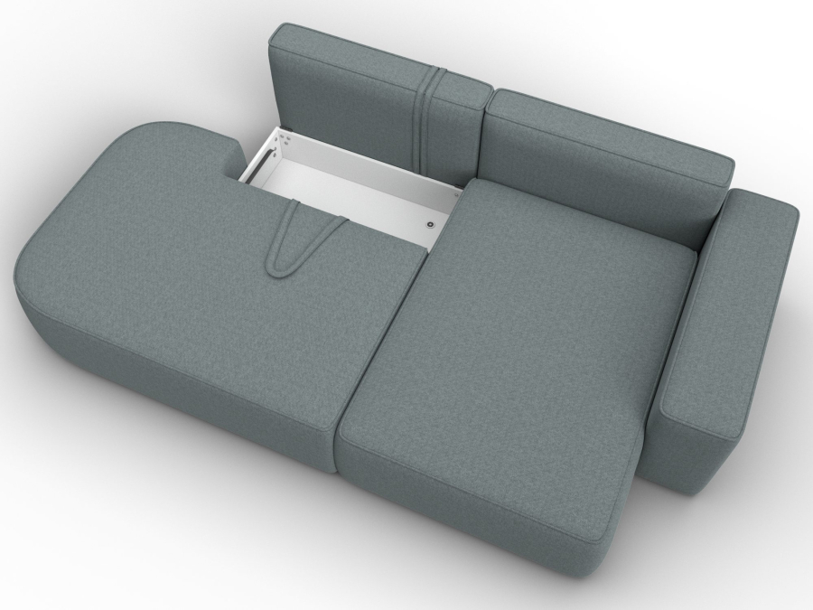 Механизм раскладки: еврокнижка. Сиденье дивана легко выдвигается вперед по направляющим. Спинка, закрепленная на кронштейнах, вручную укладывается в открывшуюся нишу.