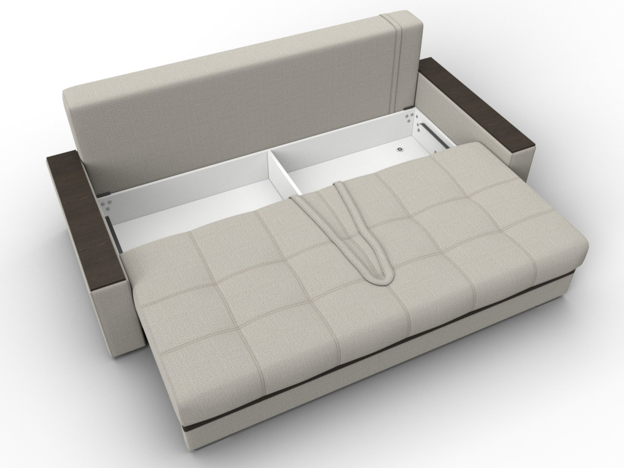 При своих габаритах 231х90х115 см подойдет для комнат любых размеров, легко раскладывается, обеспечивая спальное место 168х201 см.