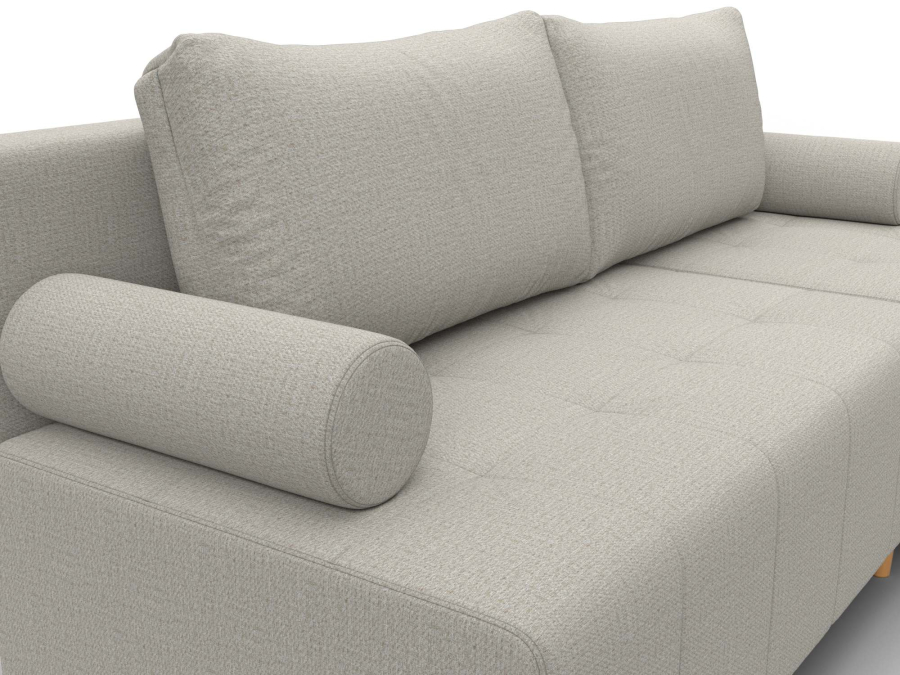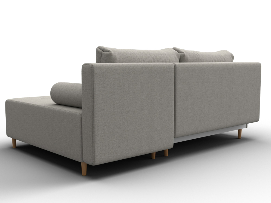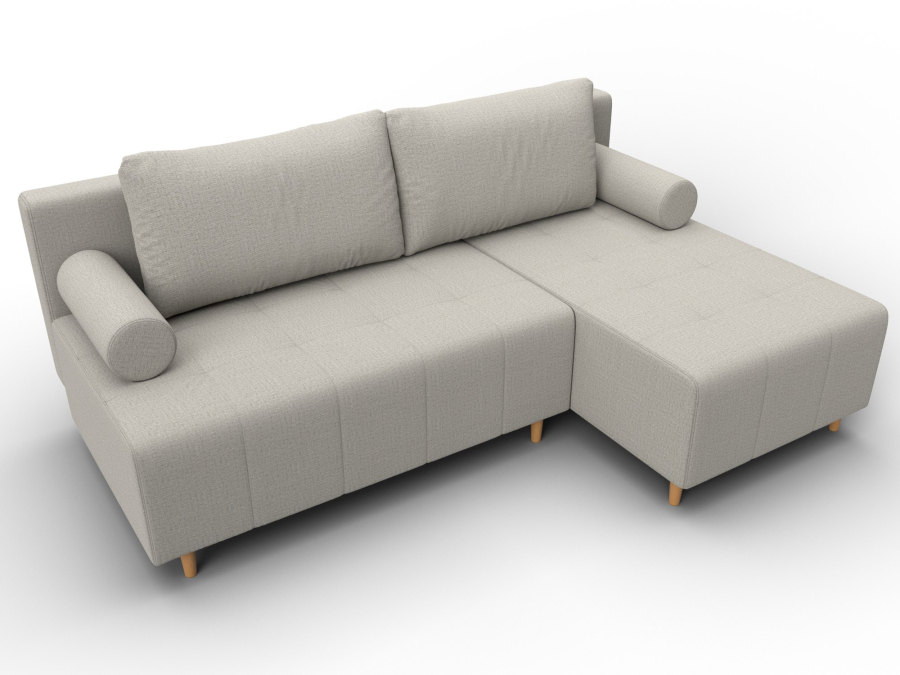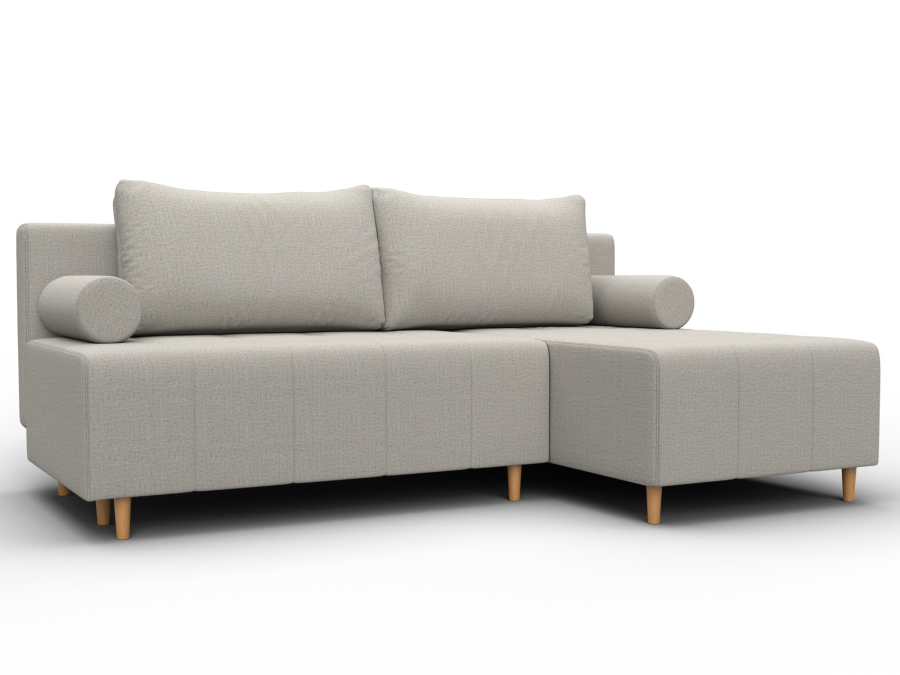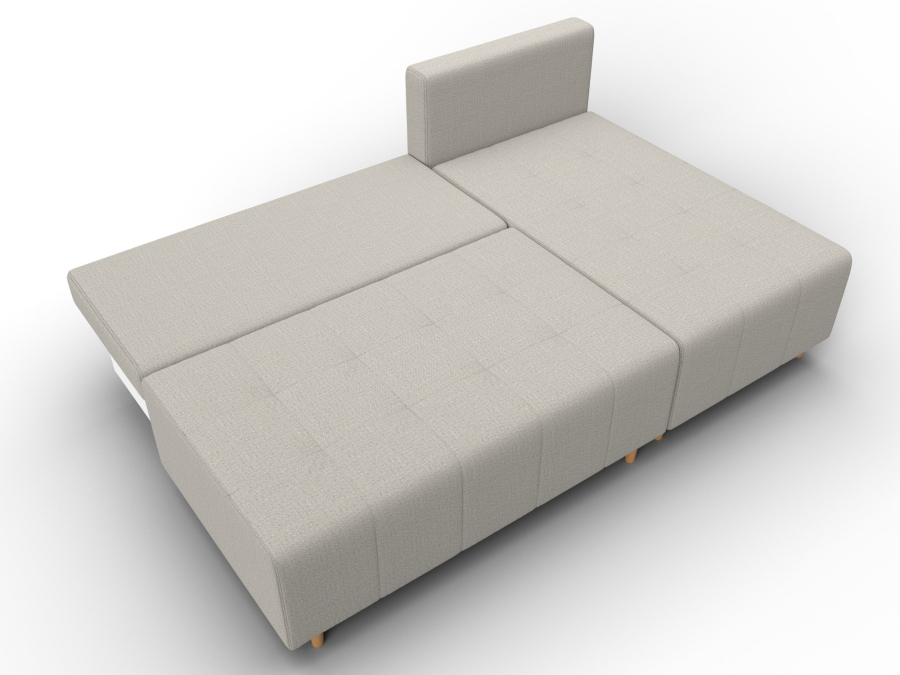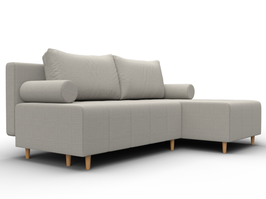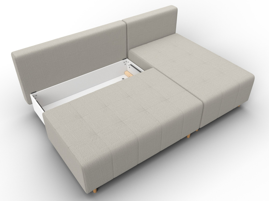 Механизм раскладки: еврокнижка. Угловой диван со спинкой, установленной на надежные кронштейны. Достаточно выдвинуть вперед сиденье, опустив ее в открывшуюся нишу. Нижняя часть легко выкатывается за счет стальных направляющих.