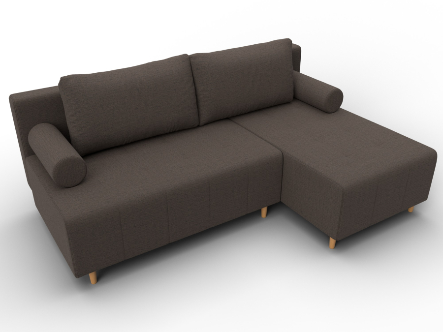 Лига-102 – угловой диван со спальным местом без подлокотников. Спинка дополнена двумя мягкими подушками. Уголовой диван может быть собран с углом с правой или левой стороны. Для хранения белья в конструкции предусмотрен ящик.