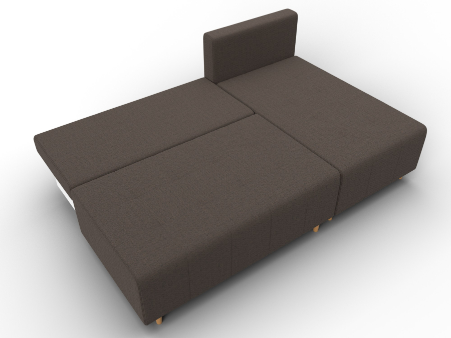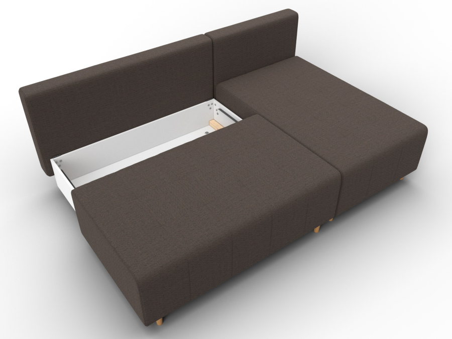 Механизм раскладки: еврокнижка. Угловой диван со спинкой, установленной на надежные кронштейны. Достаточно выдвинуть вперед сиденье, опустив ее в открывшуюся нишу. Нижняя часть легко выкатывается за счет стальных направляющих.