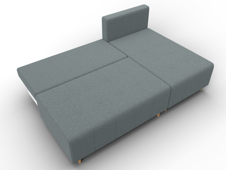 Механизм раскладки: еврокнижка. Угловой диван со спинкой, установленной на надежные кронштейны. Достаточно выдвинуть вперед сиденье, опустив ее в открывшуюся нишу. Нижняя часть легко выкатывается за счет стальных направляющих.