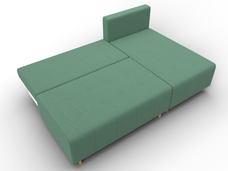 Механизм раскладки: еврокнижка. Угловой диван со спинкой, установленной на надежные кронштейны. Достаточно выдвинуть вперед сиденье, опустив ее в открывшуюся нишу. Нижняя часть легко выкатывается за счет стальных направляющих.