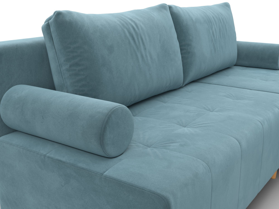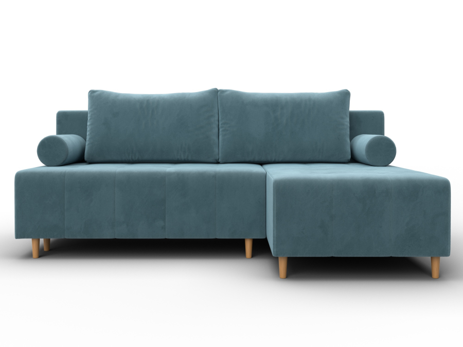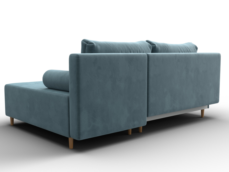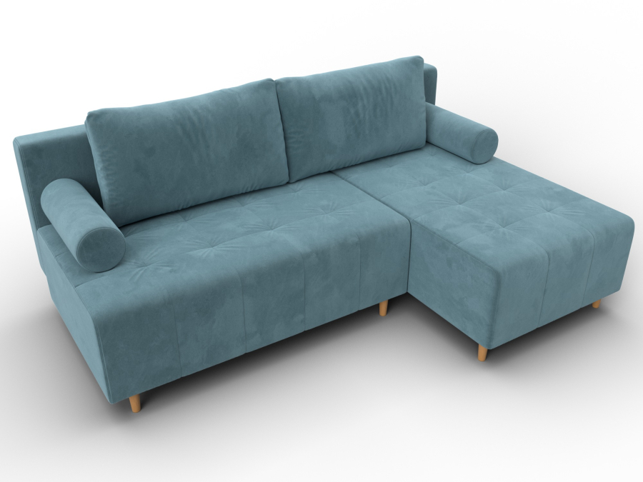 Лига-102 – угловой диван со спальным местом без подлокотников. Спинка дополнена двумя мягкими подушками. Уголовой диван может быть собран с углом с правой или левой стороны. Для хранения белья в конструкции предусмотрен ящик.