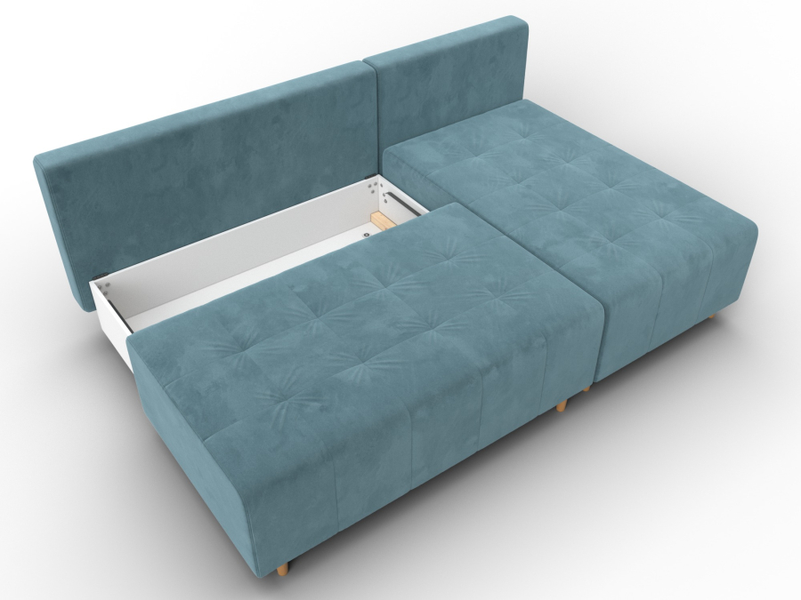 Механизм раскладки: еврокнижка. Угловой диван со спинкой, установленной на надежные кронштейны. Достаточно выдвинуть вперед сиденье, опустив ее в открывшуюся нишу. Нижняя часть легко выкатывается за счет стальных направляющих.