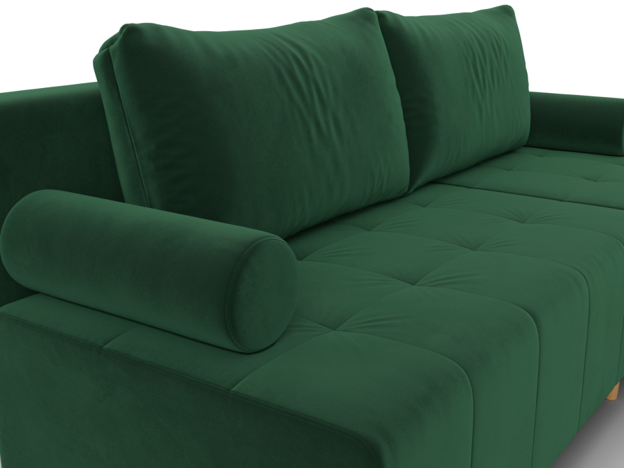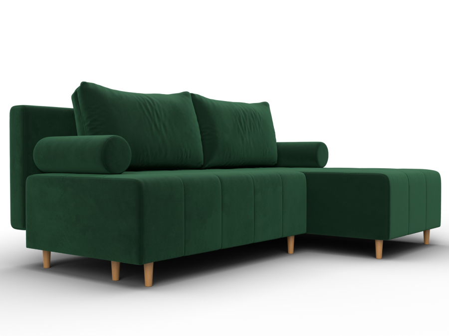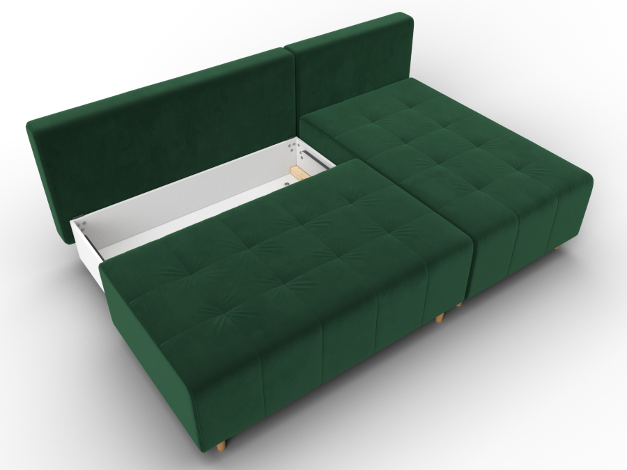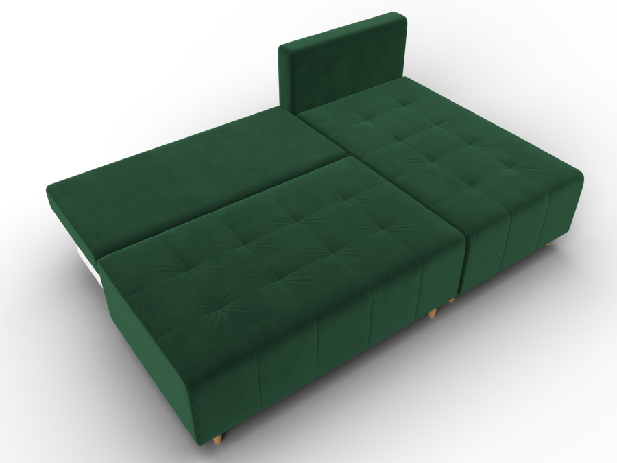 Механизм раскладки: еврокнижка. Угловой диван со спинкой, установленной на надежные кронштейны. Достаточно выдвинуть вперед сиденье, опустив ее в открывшуюся нишу. Нижняя часть легко выкатывается за счет стальных направляющих.