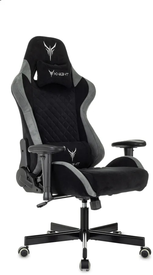 Кресло игровое Knight Regal Fabric черный/серый искусственная замша с подголов. крестов. металл
