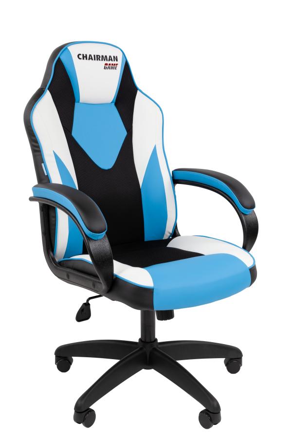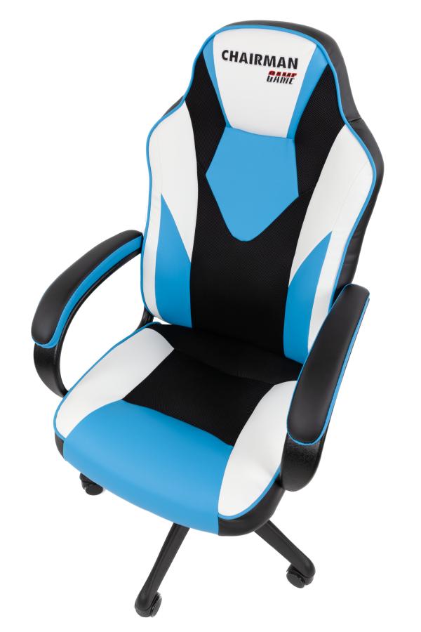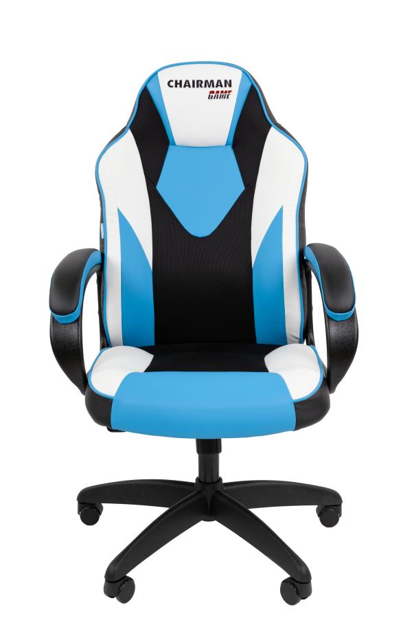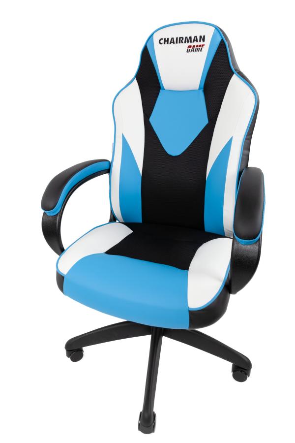 Кресло Chairman game 17 Россия экокожа черный/голубой/белый