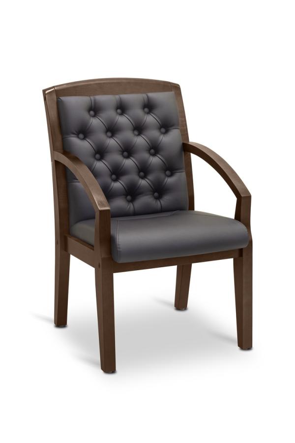 Кресло посетителя Граф с утяжкой натуральная кожа / чёрная NL01/ дерево - дуб валенсия