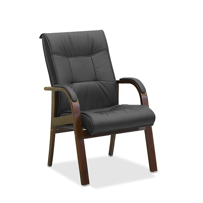 Кресло посетителя Империя H W натуральная кожа с компаньоном / чёрная NL01 /дерево - орех тоскана