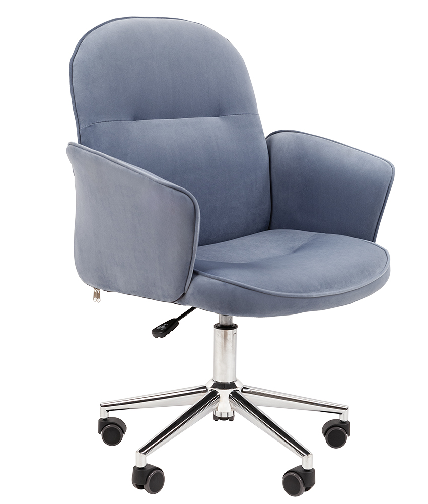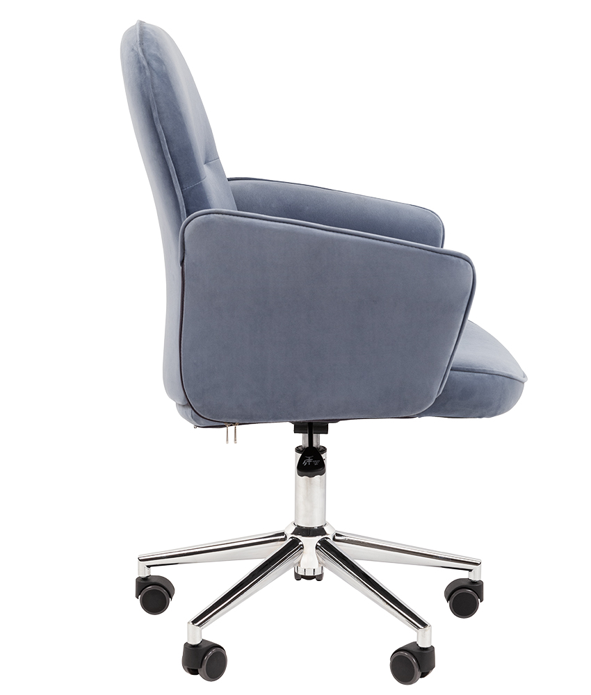 Современный дизайн с мягкой бархатистой обивкой из велюра, долговечного и неприхотливого в эксплуатации. Упругий наполнитель из вспененного полиуретана и специального материала openform, а также высокие подлокотники с мягкими вставками позволят комфортно расположится в кресле как для работы, так и для отдыха.