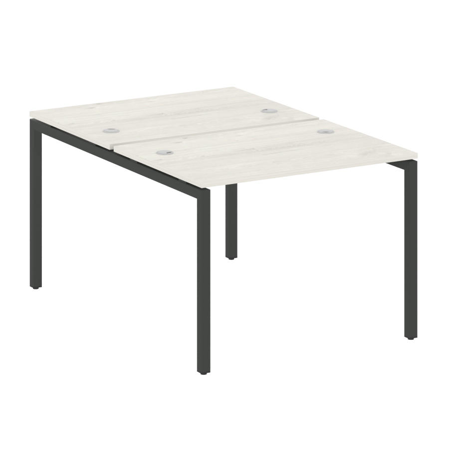 Столешницы имеют отверстия с пластиковыми заглушками кабель-канала серого цвета.