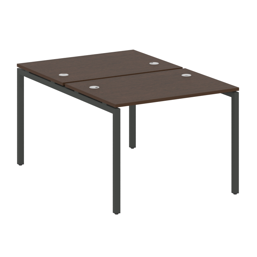 Столешницы имеют отверстия с пластиковыми заглушками кабель-канала серого цвета.