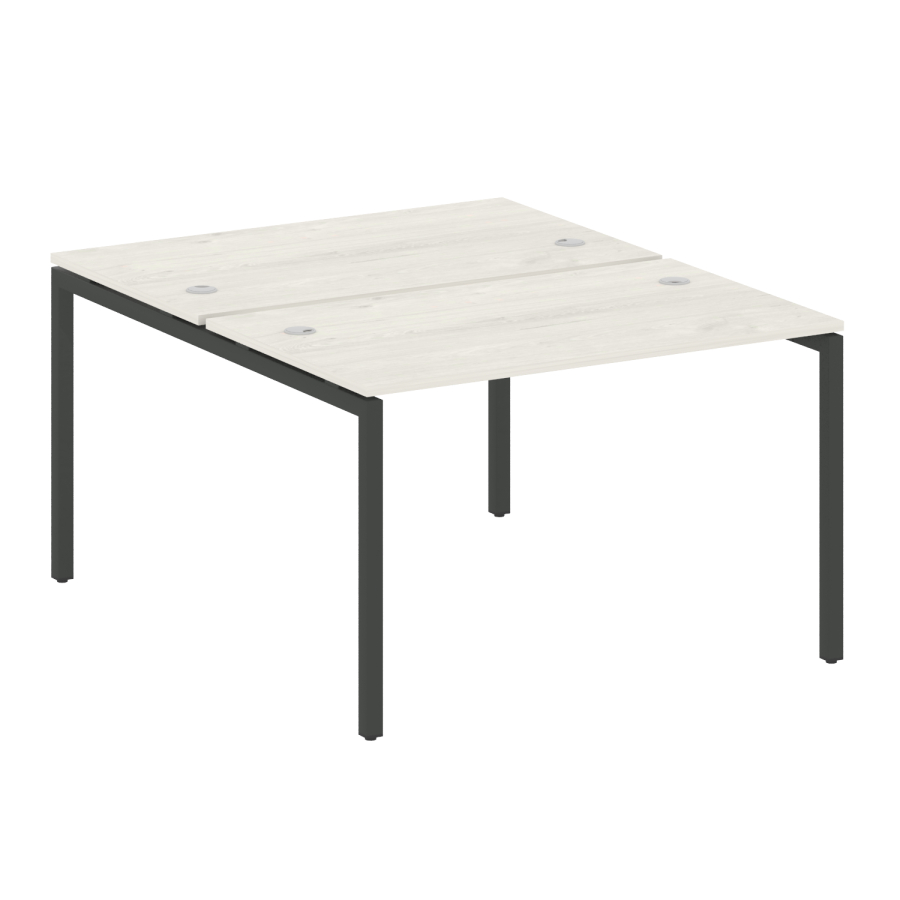 Столешницы имеют отверстия с пластиковыми заглушками кабель-канала серого цвета.