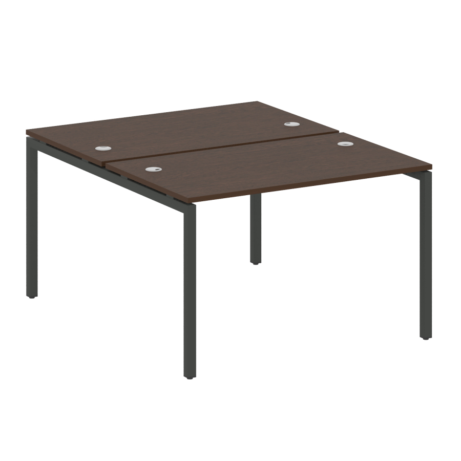 Столешницы имеют отверстия с пластиковыми заглушками кабель-канала серого цвета.