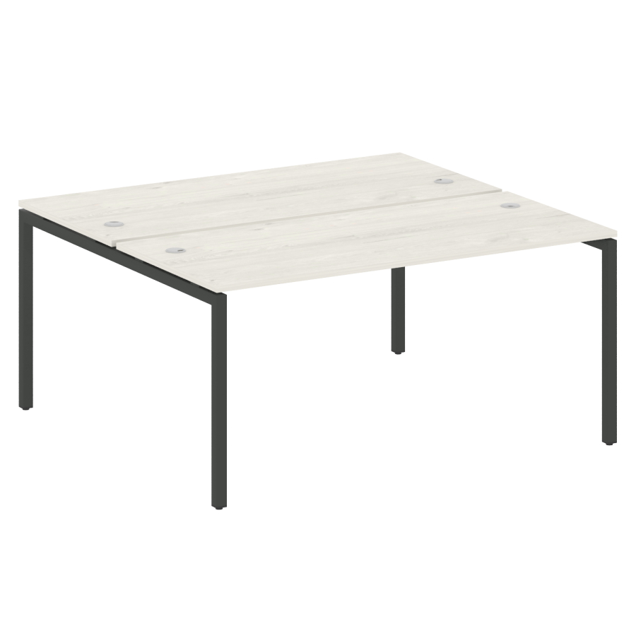 Столешницы имеют отверстия с пластиковыми заглушками кабель-канала серого цвета.