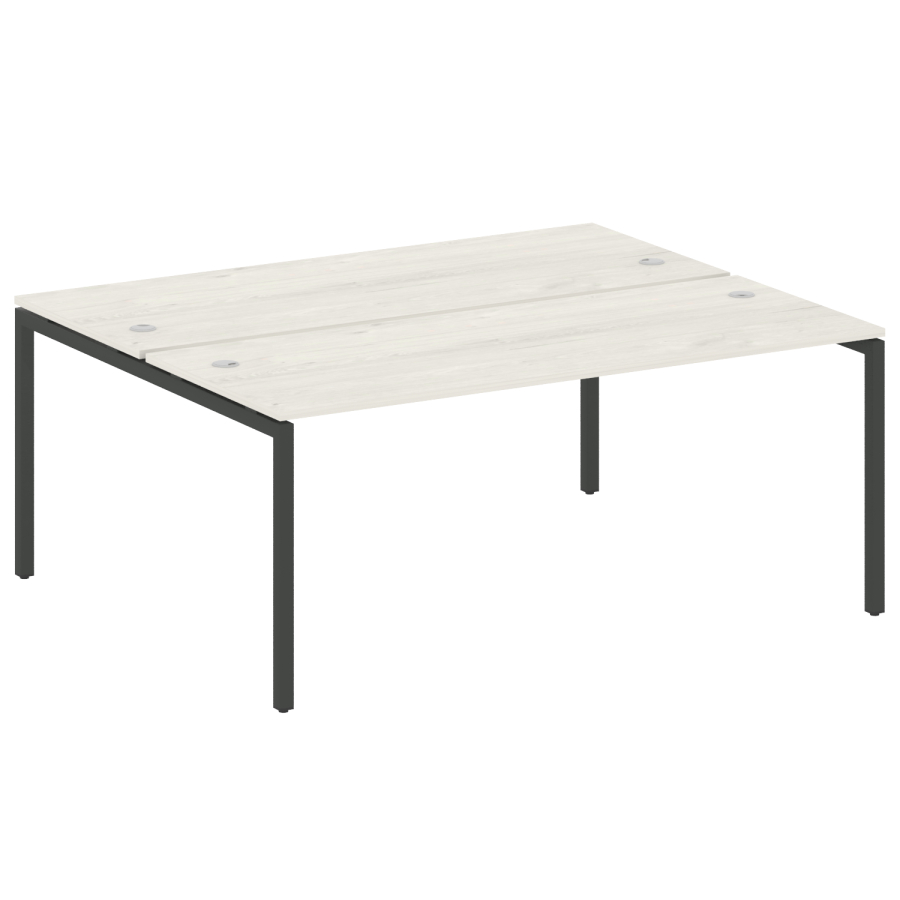 Столешницы имеют отверстия с пластиковыми заглушками кабель-канала серого цвета.