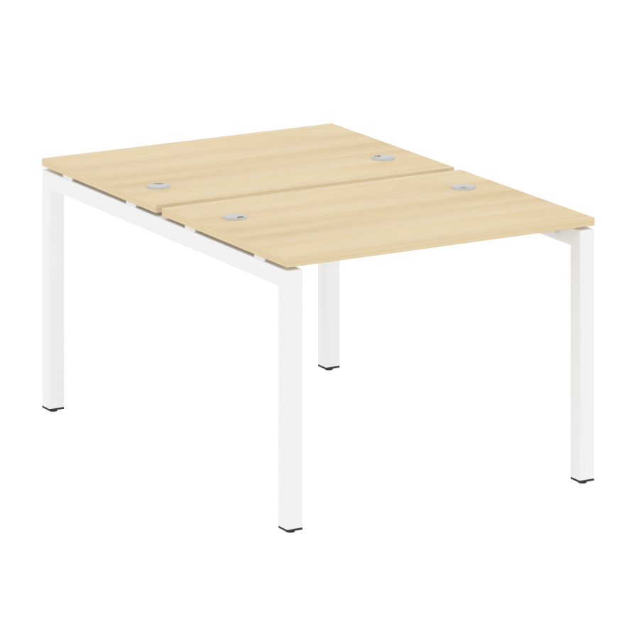Столешницы имеют отверстия с пластиковыми заглушками кабель-канала серого цвета.