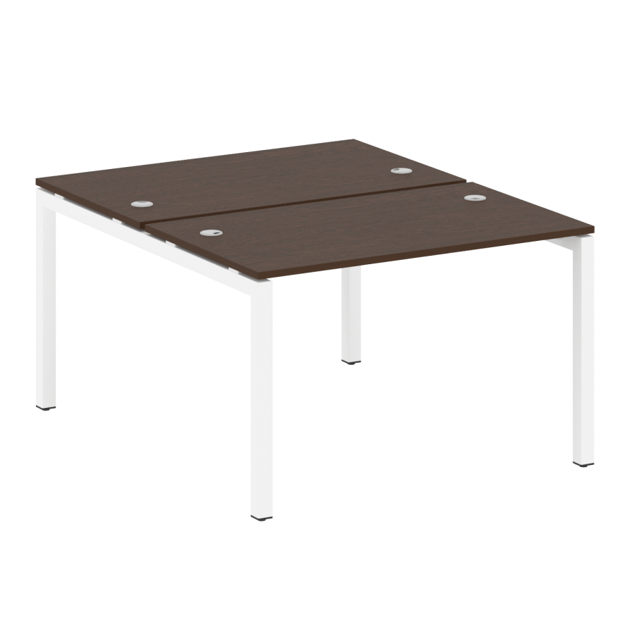 Столешницы имеют отверстия с пластиковыми заглушками кабель-канала серого цвета.
