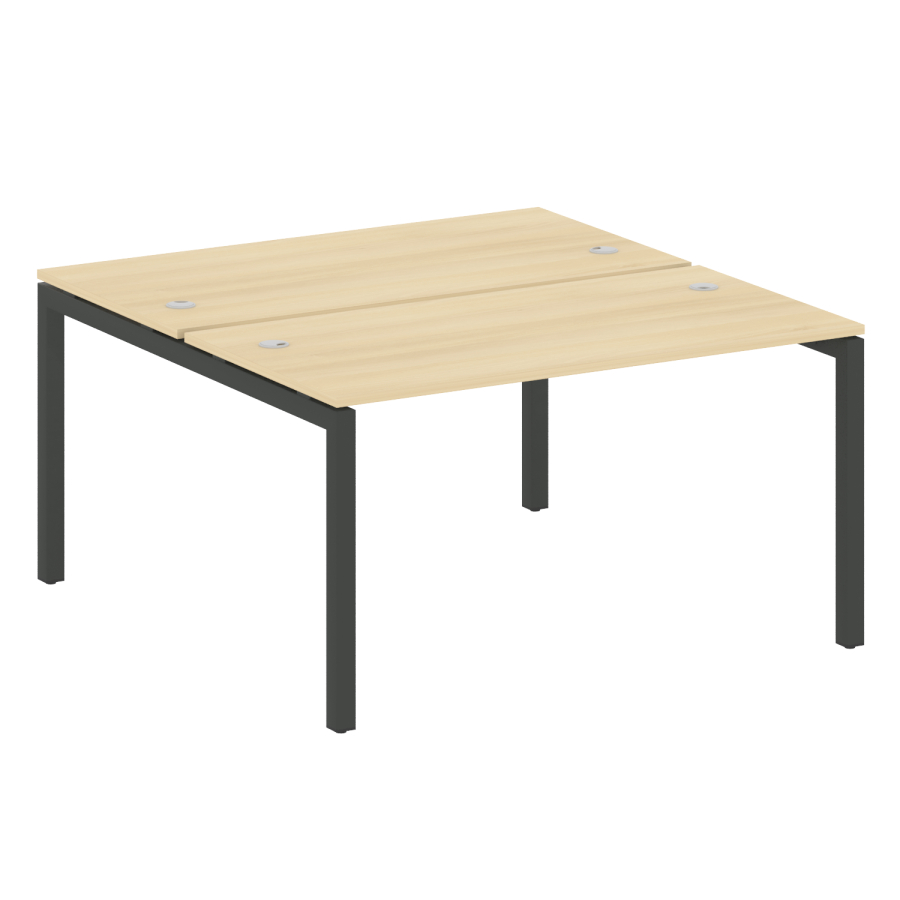 Столешницы имеют отверстия с пластиковыми заглушками кабель-канала серого цвета.
