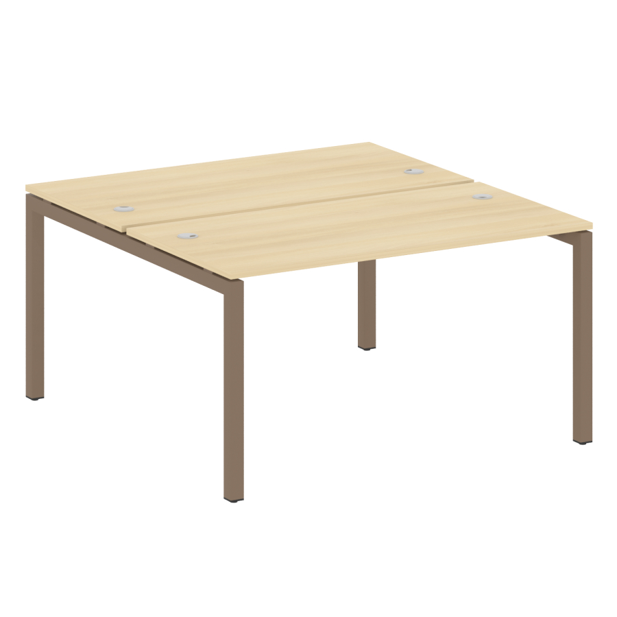 Столешницы имеют отверстия с пластиковыми заглушками кабель-канала серого цвета.