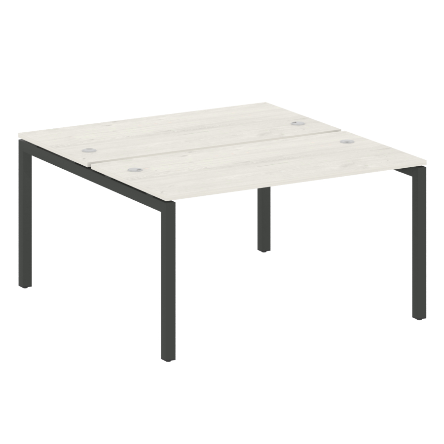 Столешницы имеют отверстия с пластиковыми заглушками кабель-канала серого цвета.