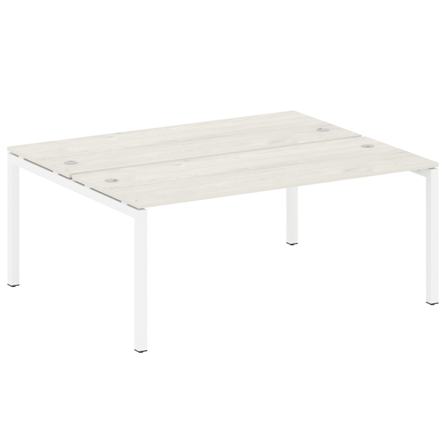 Столешницы имеют отверстия с пластиковыми заглушками кабель-канала серого цвета.