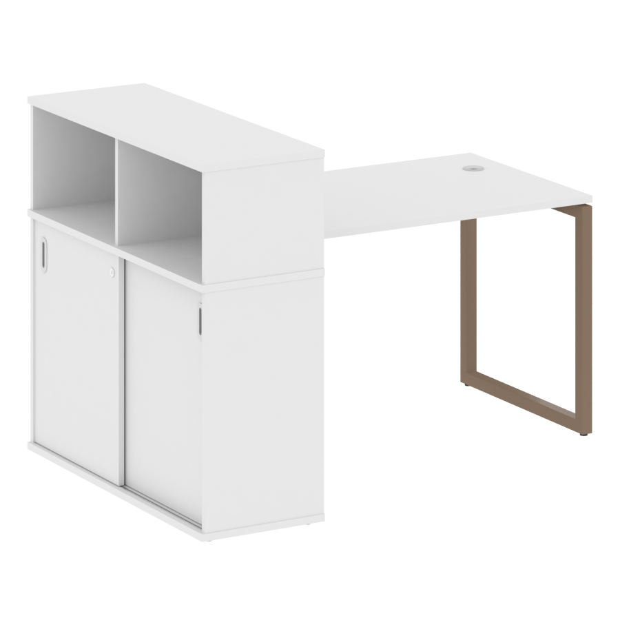 Столешницы имеют отверстия с пластиковыми заглушками кабель-канала серого цвета.