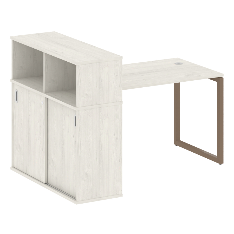 Столешницы имеют отверстия с пластиковыми заглушками кабель-канала серого цвета.
