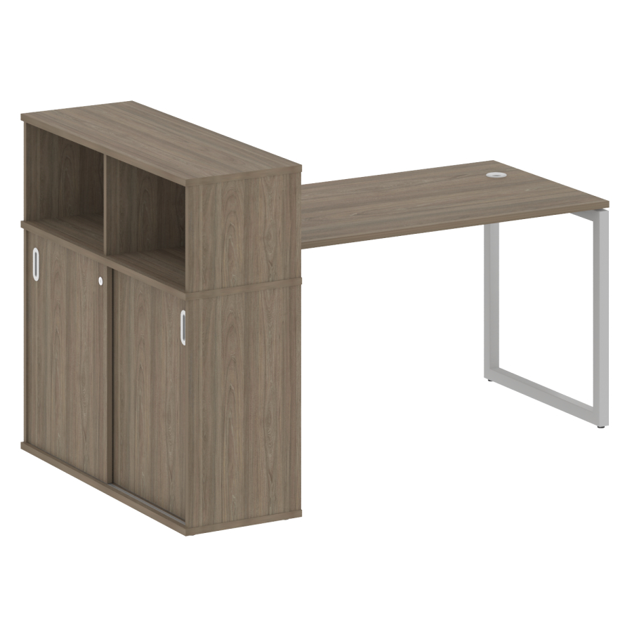 Столешницы имеют отверстия с пластиковыми заглушками кабель-канала серого цвета.