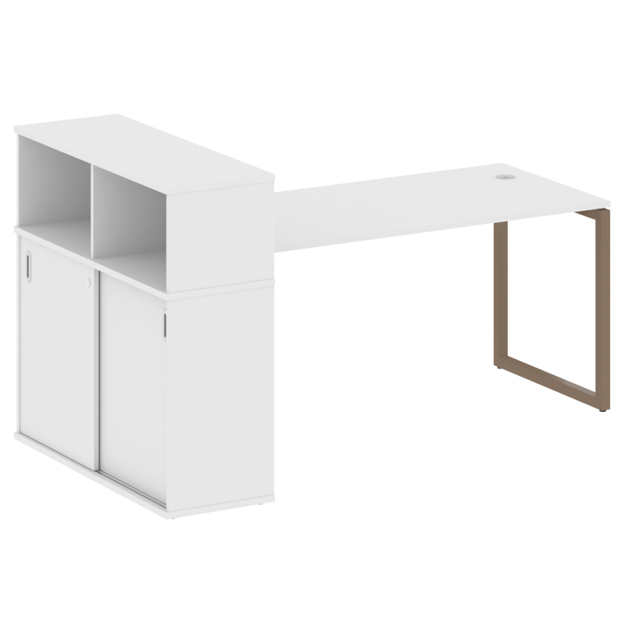 Столешницы имеют отверстия с пластиковыми заглушками кабель-канала серого цвета.