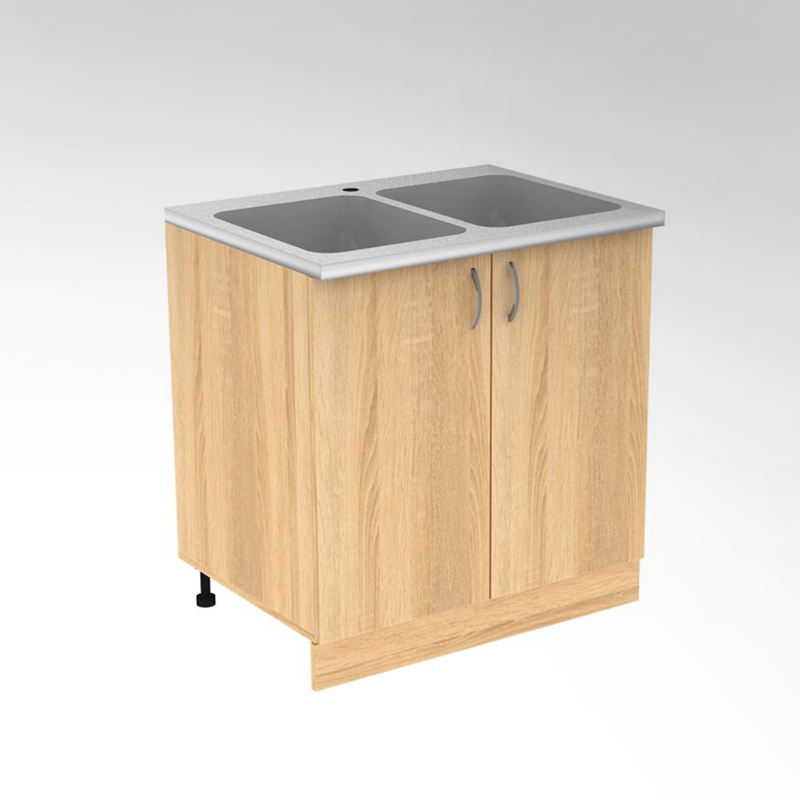 Комплектуется мойкой двухгнездовой из нержавеющей стали, смесителем и соединительной сантехникой.