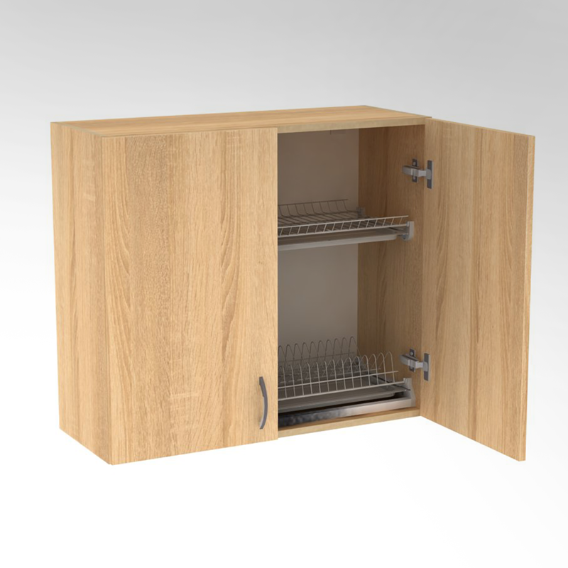 Изделие выполнено из МДФ/ЛДСП 16 мм. Имеет две глухие распашные двери, металлическую сетку-сушку и
