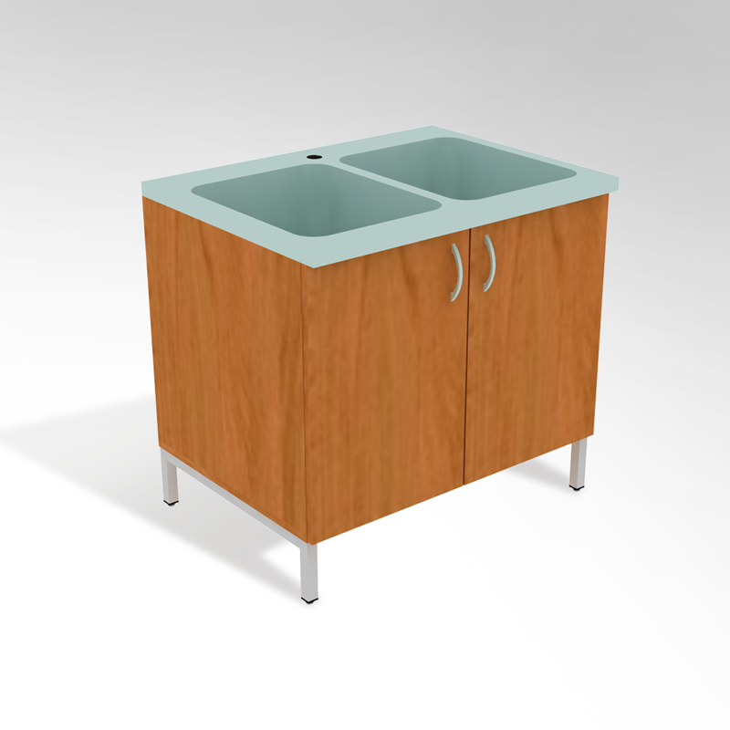 Имеет две распашные створки на четырехшарнирных петлях, кромку из ПВХ, травмобезопасные ручки и регулируемые опоры, для компенсации неровностей пола.
