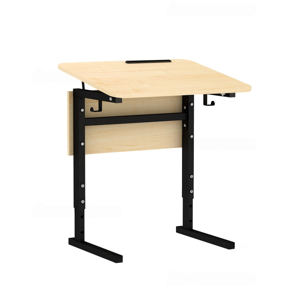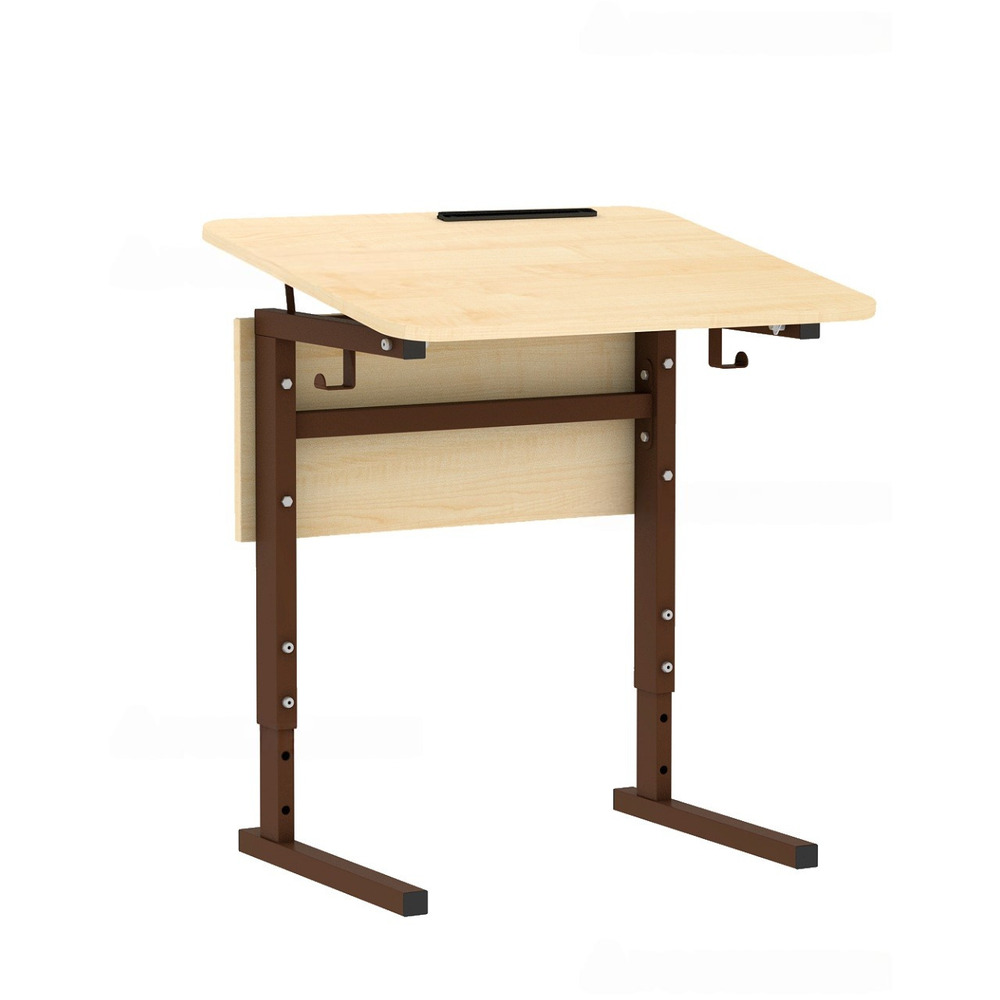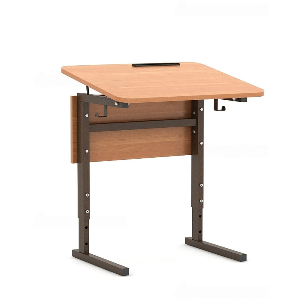 Стол ученический 115Рп, 1-местный, регулир. высота и наклон столешницы 0-10° на прямоугольной трубе (м/к Коричневый, Серый, Черный), гр.2-4