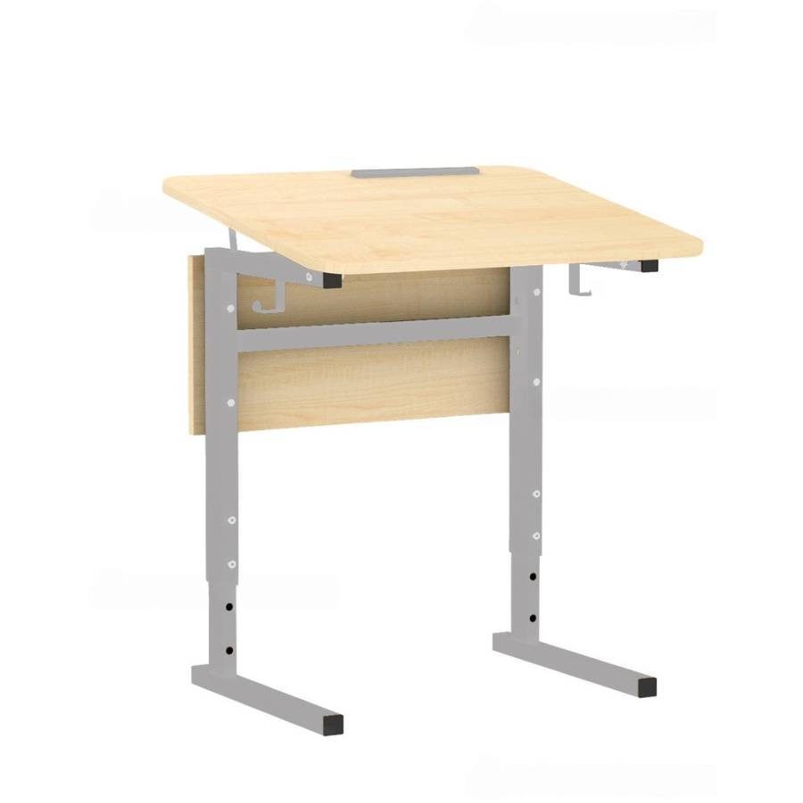 Столешница изготовлена из ЛДСП 16 мм размером 700х500 мм, торцы отделаны противоударной кромкой ПВХ 1 мм. В комплектацию входят столешница с закругленными углами, передняя панель, каркас, 2 крючка, лоток для письменных принадлежностей. Металлокаркас окрашен износостойкой порошковой краской.