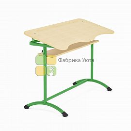 Стол оснащен двумя крючками для портфелей и ложементом для карандашей и ручек, полкой.