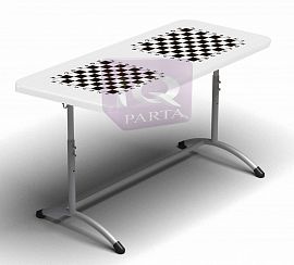 Изготавливается из прочной фанеры. Оснащен регулируемым подстольем. Столешница не наклонная.