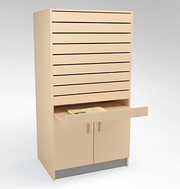 Для того чтобы сэкономить пространство в учебном классе мы разработали функциональный и практичный шкаф, который включается в себя еще и тумбу.